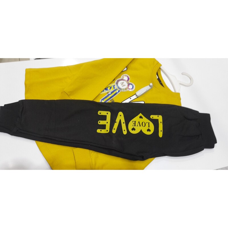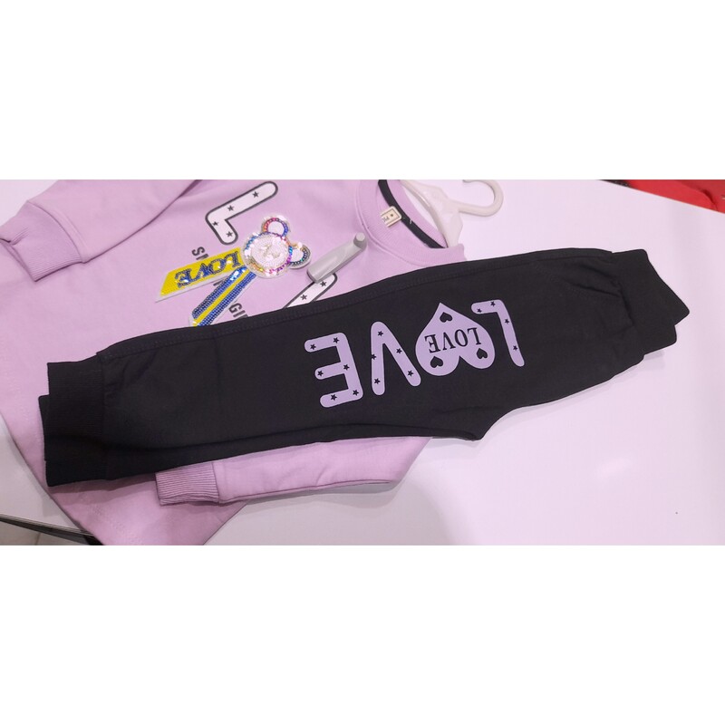 ست بلوز شلوار نخ پنبه دورس دخترانه کیفیت تضمینی طرح Love (40 تا 60)