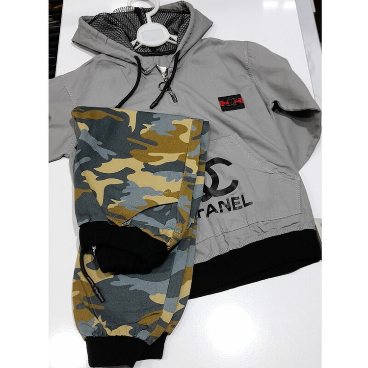 ست هودی و شلوار کتان کلاهدار طرح ارتشی پسرانه ضخیم ( 45 تا 55 )