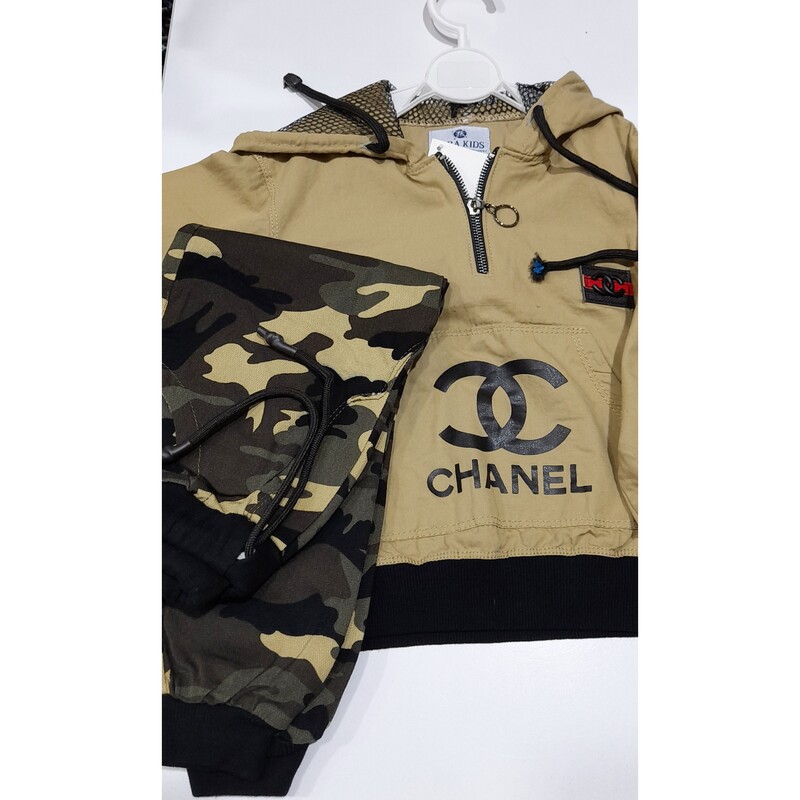 ست هودی و شلوار کتان کلاهدار طرح ارتشی پسرانه ضخیم ( 45 تا 55 )