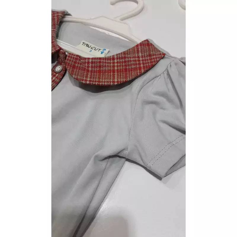 تیشرت تک دخترانه نخ پنبه لاکرادار یقه به به مجلسی ( 2 تا 9 سال)