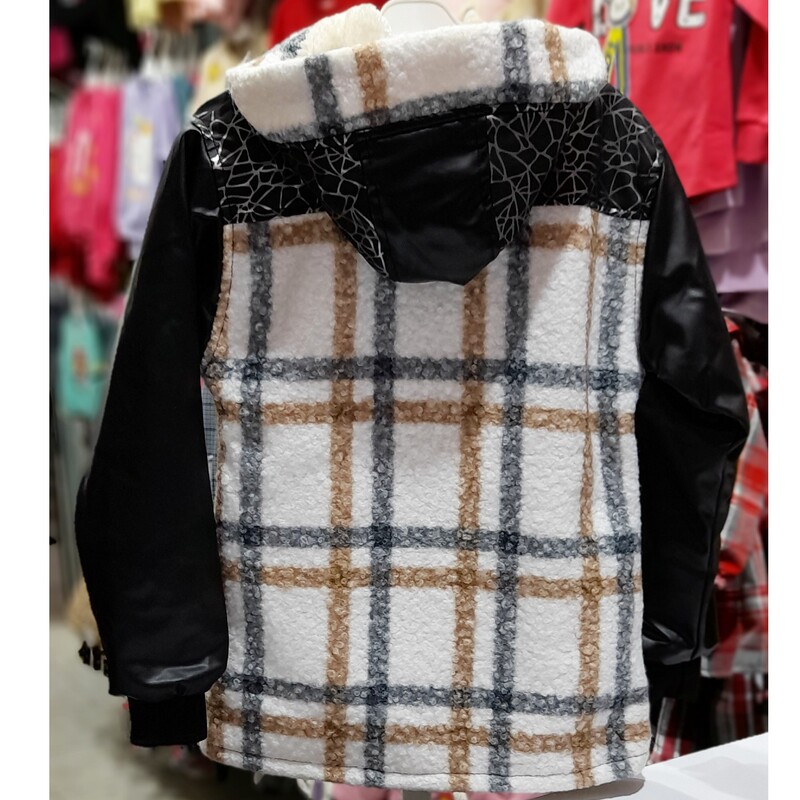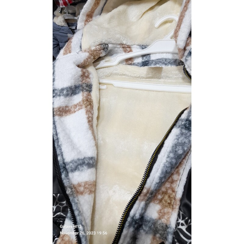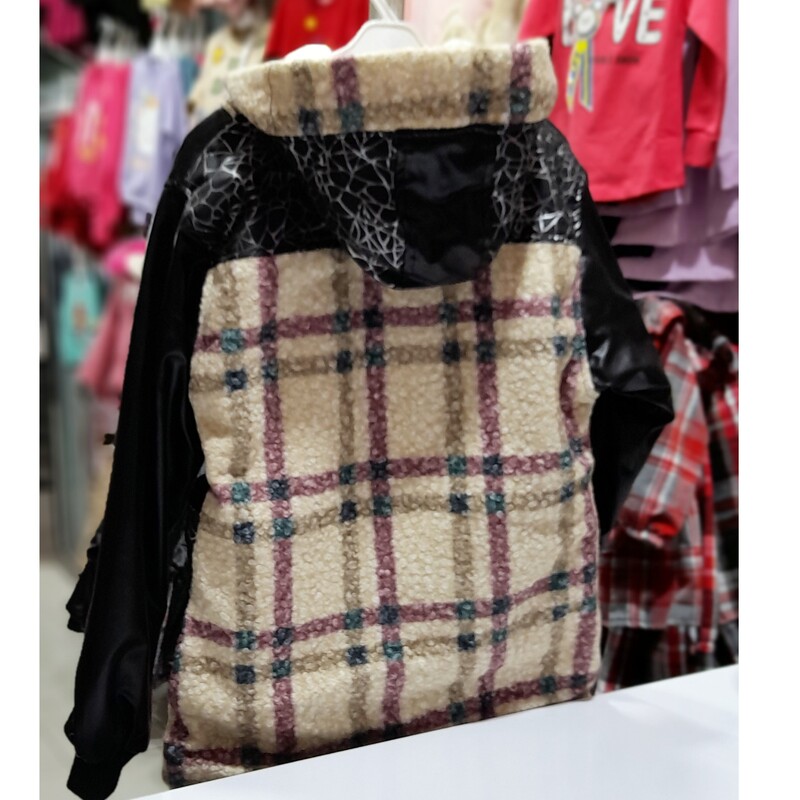 کاپشن پرطفدار دخترانه تو کرکی ضخیم چرمی ترکیبی بلند(65 تا 90)