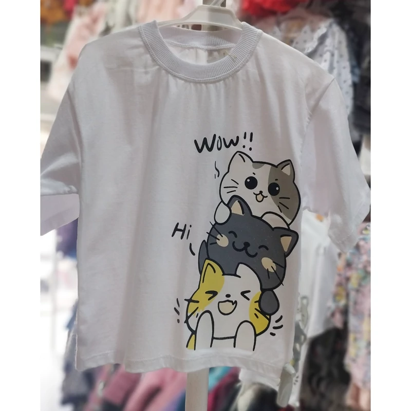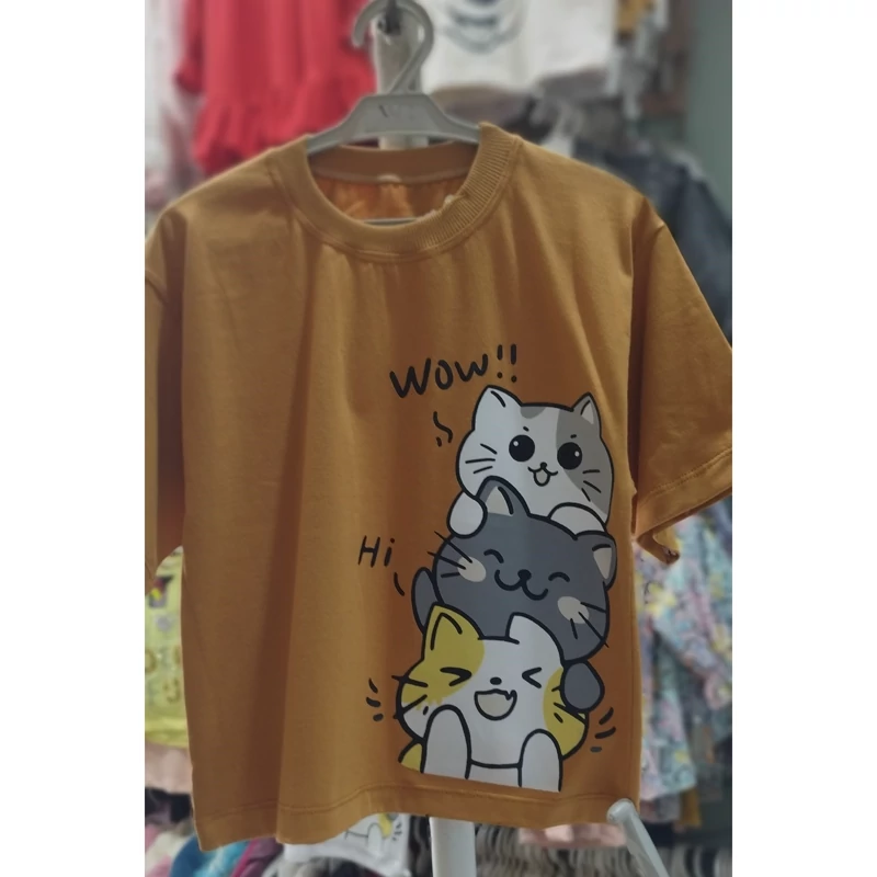 تیشرت لش دخترانه طرح سه گربه دلبر