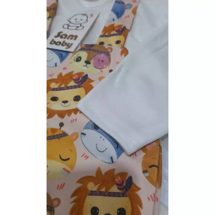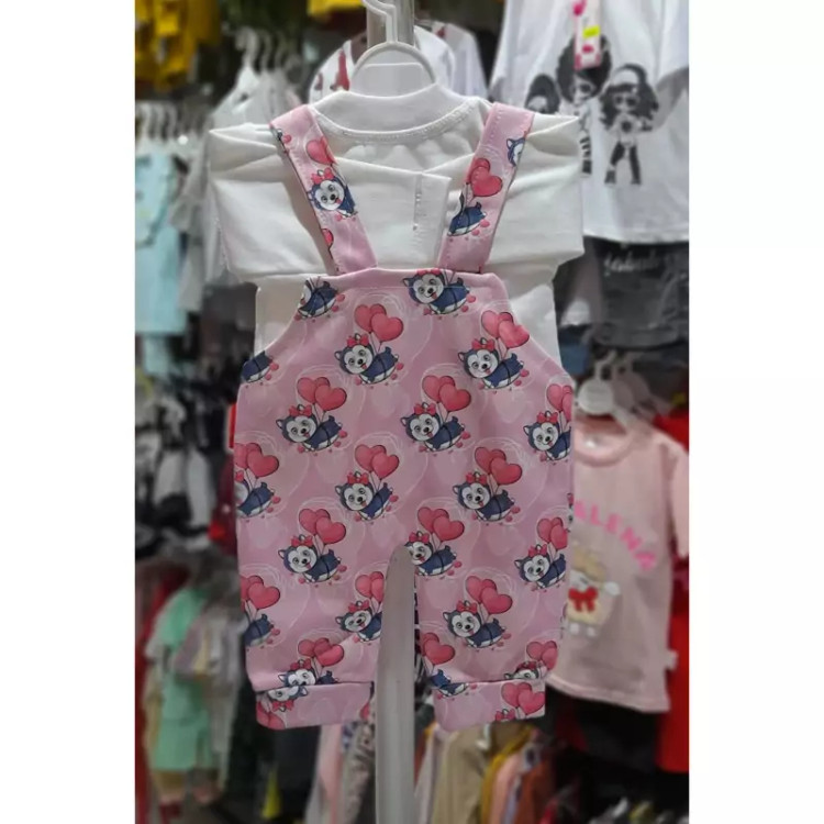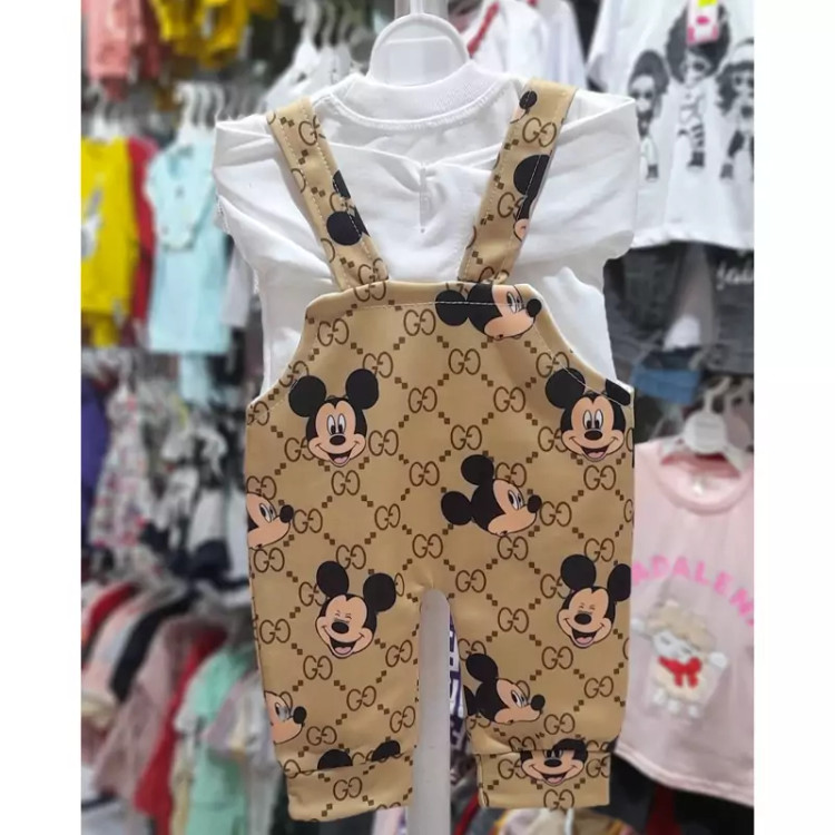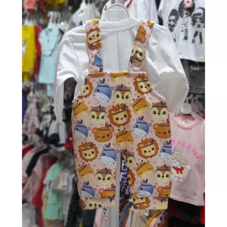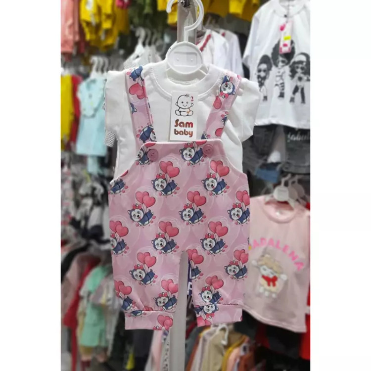 سرهمی نوزادی دختر پسری دوتیکه بیلر و بلوز نخی(1ماه تا 6ماه)