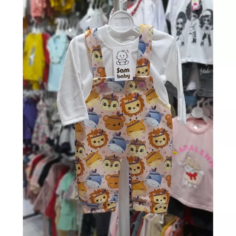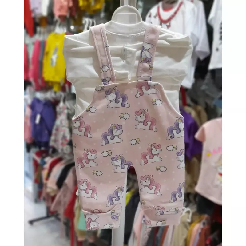 سرهمی نوزادی دختر پسری دوتیکه بیلر و بلوز نخی(1ماه تا 6ماه)