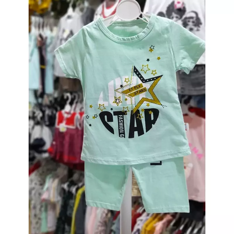 ست تیشرت شلوارک دخترانه طرح ستاره تمام نخ (6ماه تا 1 سال)