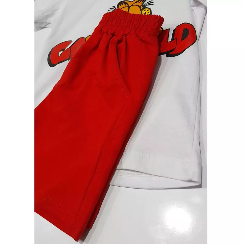 ست تیشرت شلوارک پسر دختری طرح گارفیلد پشتو رو چاپ اسپرت (2 تا 9سال)
